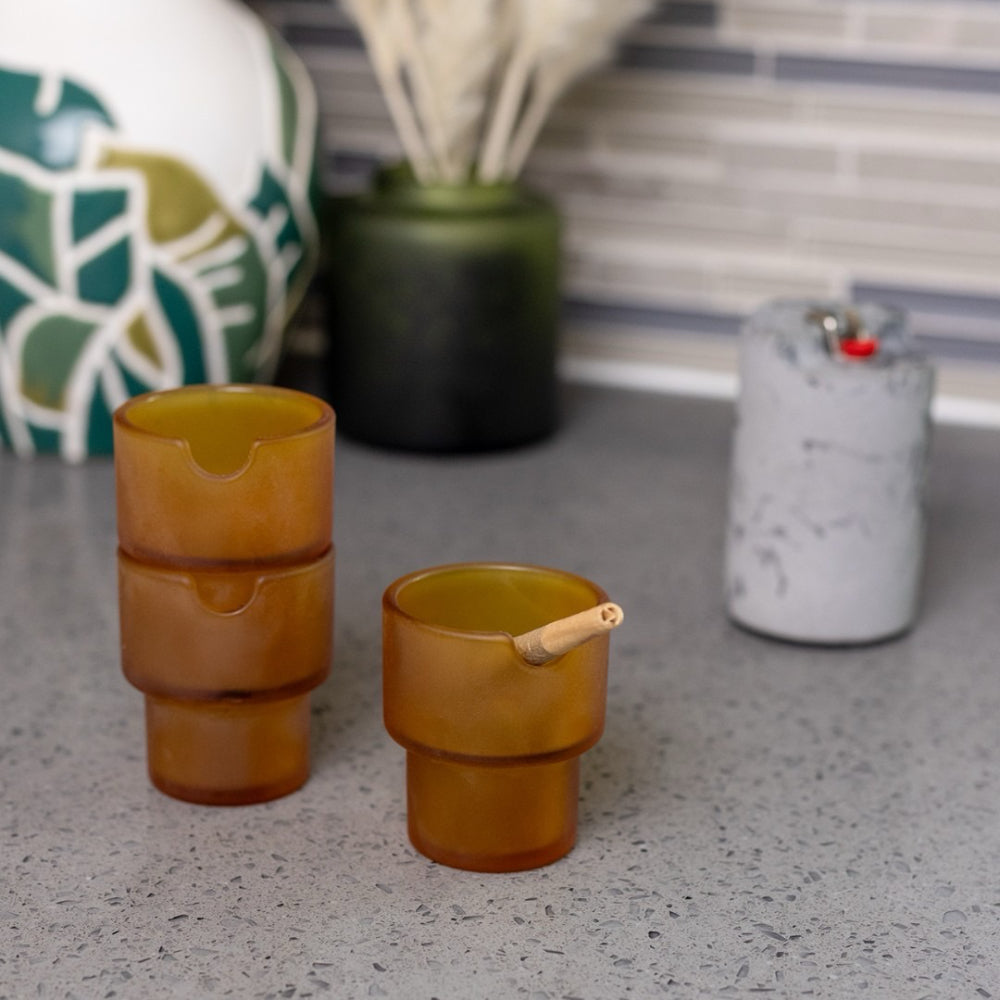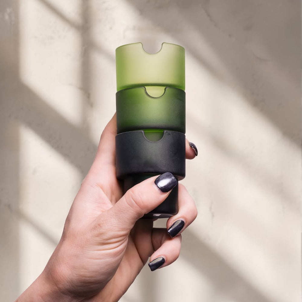 Valmistatud kvaliteetsest boorsilikaatklaasist, iga tuhatoos pakub kerget tunnet, tugevat vastupidavust ja siledat sisemust kiiremaks puhastamiseks. Liivapritsitud välimine viimistlus loob pehme mati välimuse, samas kui virnastatav tuhatooside disain aitab säästa ruumi, kui seda ei kasutata. See komplekt sobib hästi isiklikuks kasutamiseks, jagatud ruumidesse või läbimõeldud kingituseks.