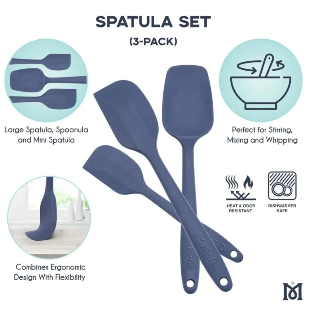 See komplekt sisaldab kolme olulist tööriista teie kööki: täissuuruses spaatlit, mini spaatlit ja lusikaspaatlit!