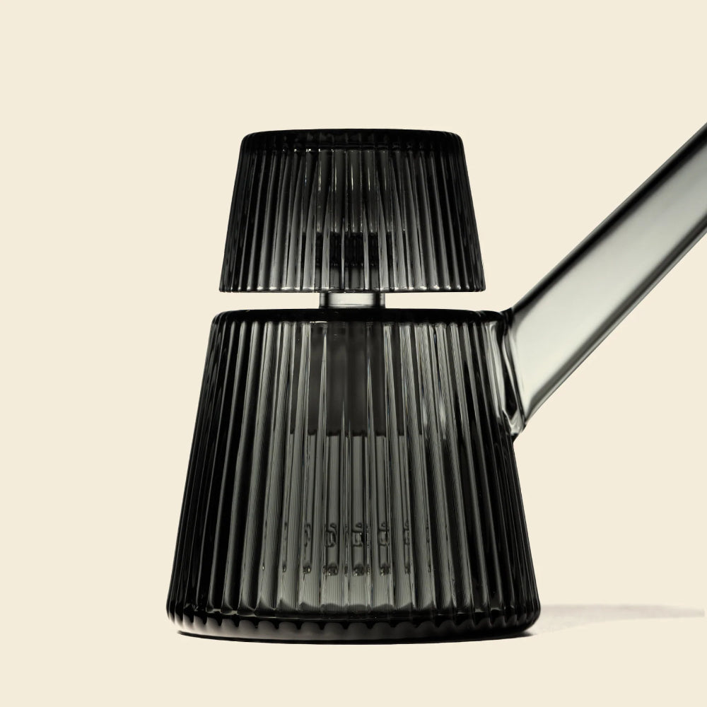 Skulptuurse ribidega klaaskeha ja läbimõeldult nurga all oleva huuliku abil toob Deco Bubbler visuaalse atraktiivsuse ja ergonoomilise mugavuse täiuslikku harmooniasse. Selle kaheosaline konstruktsioon võimaldab vaevata puhastamist, samas kui kompaktne disain muudab selle silmapaistvaks keskpunktiks igas kaasaegses ruumis. Ideaalne neile, kes hindavad oma aksessuaarides nii ilu kui ka jõudlust.