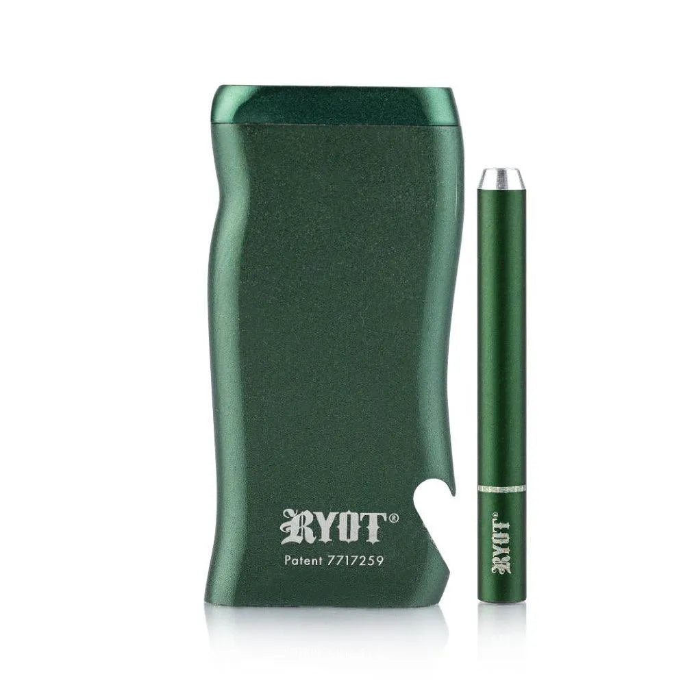 Super Magnetic RYOT koos Dugout One Hitter sisaldab meie ainulaadset integreeritud pudeliavajat ja unikaalset püstolikäepideme disaini. Meie patenteeritud magnetilise kaane ja pokkeri disainiga on Super Dugout loodud vältimaks lekkeid ja peatamaks soovimatute lõhnade levikut. Super Dugout sobib ideaalselt kätte ja selle alumiiniumkonstruktsioon lisab vastupidavust. Saadaval mattmust, sinine, roheline, hõbedane, relvmetall ja roosakuldne.