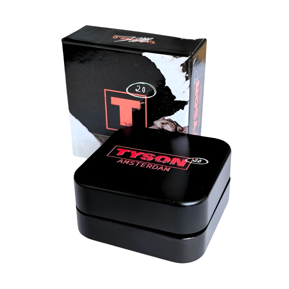 Metallist Grinder Tyson Amsterdam TYSON 2.0 on kvaliteetne aksessuaar, mis pakub tipptasemel jahvatamiskogemust. Kuid sa ei pea olema raskekaalu meister, sest sees olevad hambad teevad töö ära, et peenelt jahvatada ja purustada mis tahes ürti. Kaunistatud TYSON 2.0 logoga, on see aksessuaar mitmekülgne, mugav ja kaasaskantav - ideaalne kõigile suitsetajatele ja kanepisõpradele.