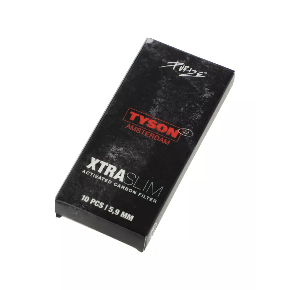 Tyson 2.0 x Purize Xtra Slim Carbon Filters are designed to enhance your hand-rolled smoking experience by reducing harshness, cooling the smoke, and filtering out unwanted particles using high-quality, coconut-based activated carbon.
