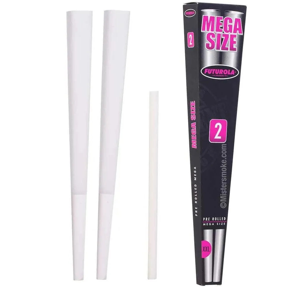 Miks lihtsalt minna suureks, kui saad minna mega suureks! Üliõhukesed ja aeglaselt põlevad, Futurola'i eeltäidetud Mega Suurus Koonused on 280mm pikk, sealhulgas 88mm raske 100% FSC (keskkonnasõbralik) paberi...