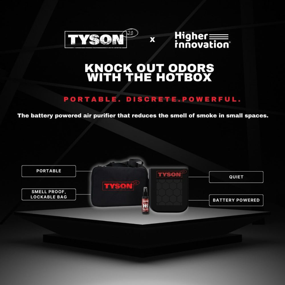 Värske õhk, igal pool. Tutvustame The HotBox – kompaktset, reisimiseks valmis kaasaskantavat suitsu &ja lõhna õhupuhastit, mis on loodud koostöös poksilegend Mike Tysoniga. Mõeldud neile, kes nõuavad liikvel olles puhast õhku, ühendab see võimas puhasti tipptasemel filtreerimistehnoloogia vastupidava, meistrivõistluste tasemel jõudlusega.