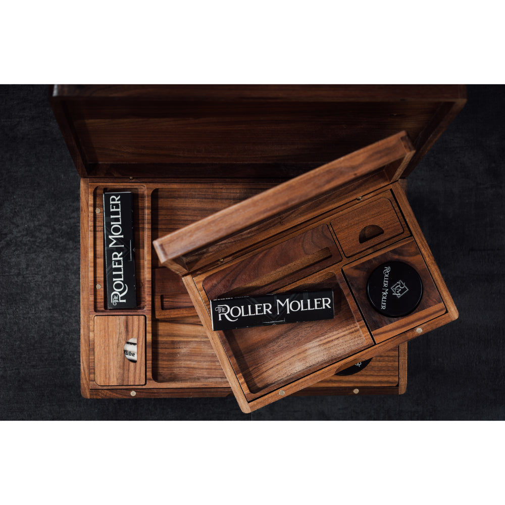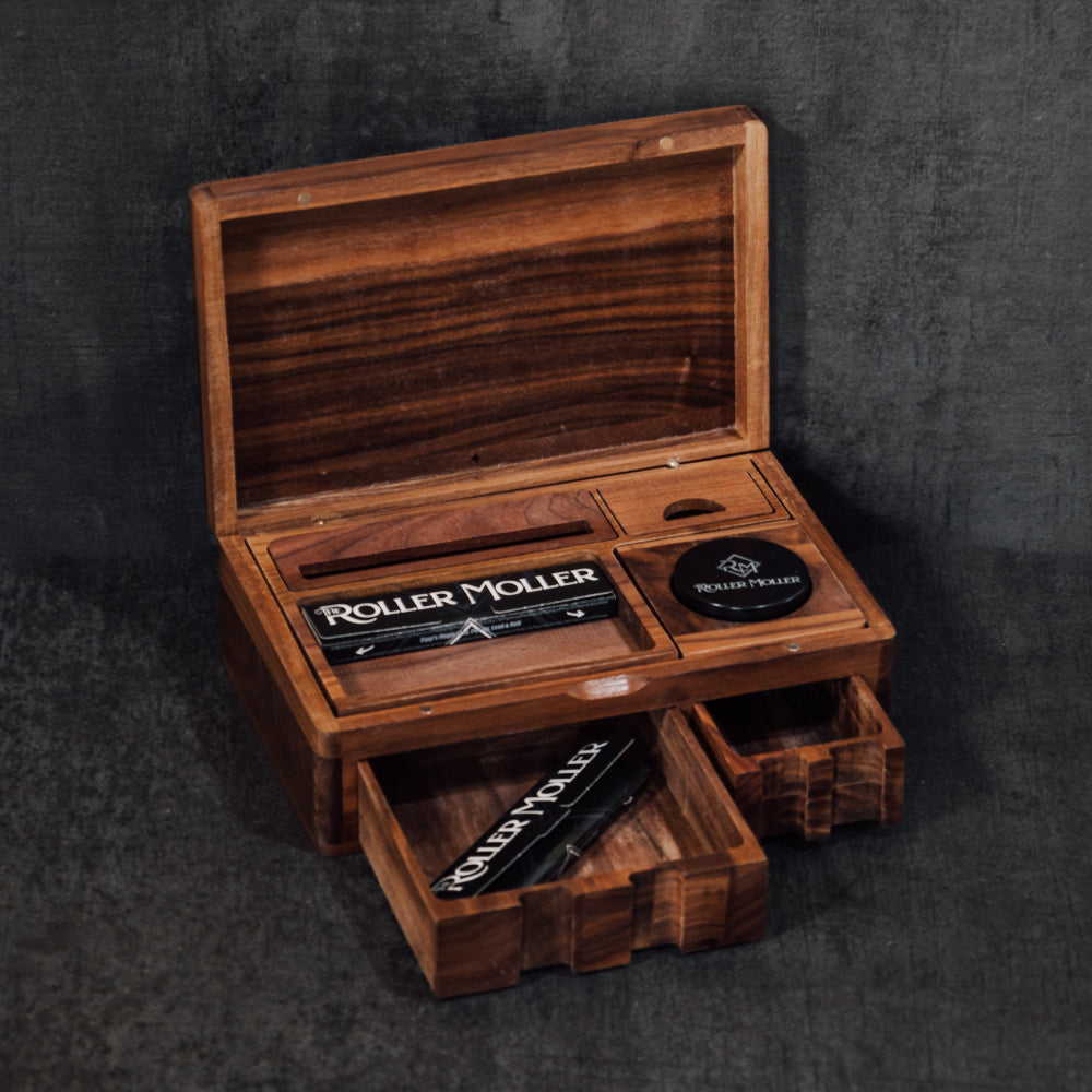 The Roller Moller Puidust Stash Box - Kompaktne Väljaanne on kvaliteetne suitsetaja komplekt, mis on loodud neile, kes hindavad nii kvaliteeti kui ka mugavust. See käsitsi valmistatud puidust karp, mis on loodud kaasaskantavuse ja elegantsi silmas pidades, hoiab kõik teie rullimisvajadused ühes stiilses ja organiseeritud ruumis - ideaalne kasutamiseks kodus või liikvel olles.