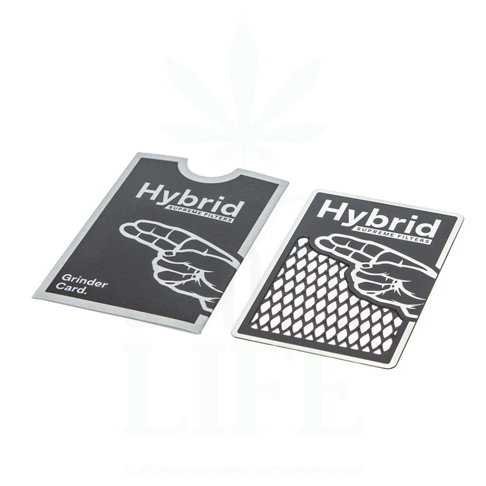 It’s a wallet-size grinder card from Hybrid Supreme Filters designed to shred dry herbal blends and tobacco quickly and evenly. The slim “credit card grinder” format makes it ideal for anyone who wants a compact tool that fits into a wallet, pouch, or travel case.