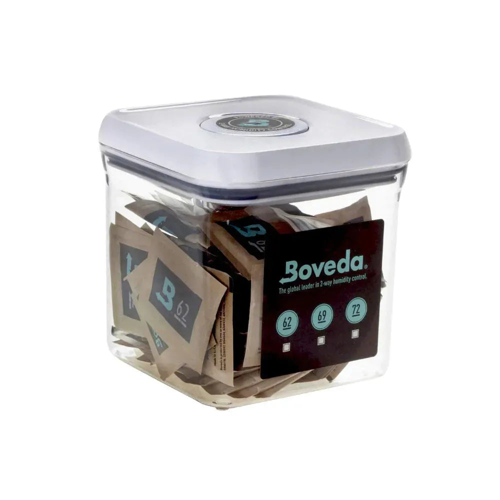 Пакеты по 4 г 2" х 2" и обработать до 1/2 унции в небольших пакетах или контейнерах. 8-граммовые пакеты 2.75" х 2.5" и обработать до 1 унции. Эти пакеты для контроля влажности хранятся месяцами в герметичном контейнере и имеют срок годности 1 год. Клиенты увидят, что Boveda отличный способ сохранить цвет, аромат и вкус прекрасной травы. Также прост в использовании. Просто положите его в герметичный контейнер или пакет и замените, когда он станет жестким.