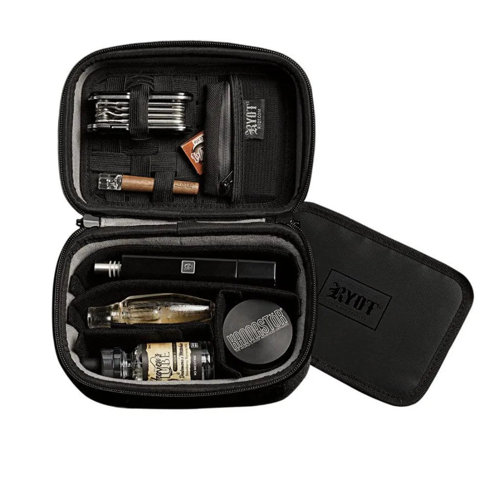 The RYOT Safe Case полностью оснащен настраиваемой подкладкой и технологией X-Strap для фиксации снаряжения разных размеров и форм. Каждый Safe Case включает съемный RYOT Fresh Pod, чтобы дать вашему контейнеру дополнительный уровень защиты от запаха. На ходу? Ваш Safe Case содержит съемный Лоток для Скручивания также оснащен технологией поглощения запаха углем. Хорошо сочетается с Kannastör GR8TR, RYOT Стеклянные банки для хранения