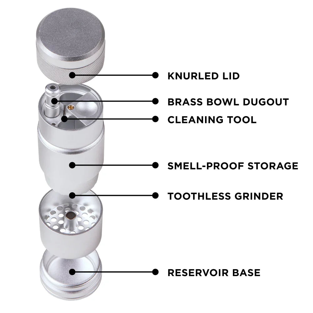 Встроенная Футляр для трубки камера: Храните ваш Футляр для трубки, инструмент для чистки и измельченные травы в одном компактном устройстве.
