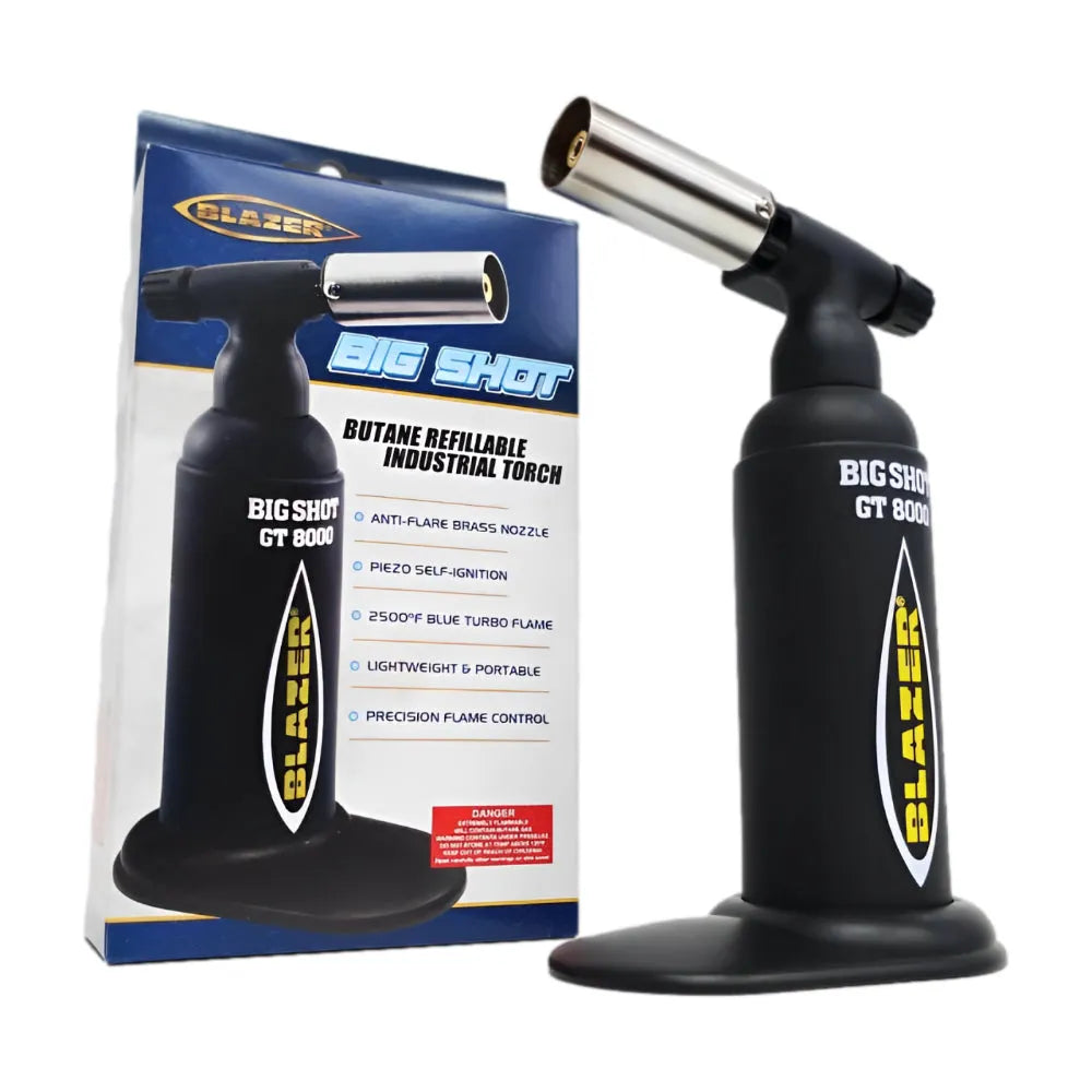 Мощная, портативная, заправляемая бутановая горелка Anti-Flare. Big Shot имеет прочное и надежное латунное сопло пламени, съемное основание и точный контроль пламени. Переверните ее вверх дном, не беспокоясь о задувании пламени.