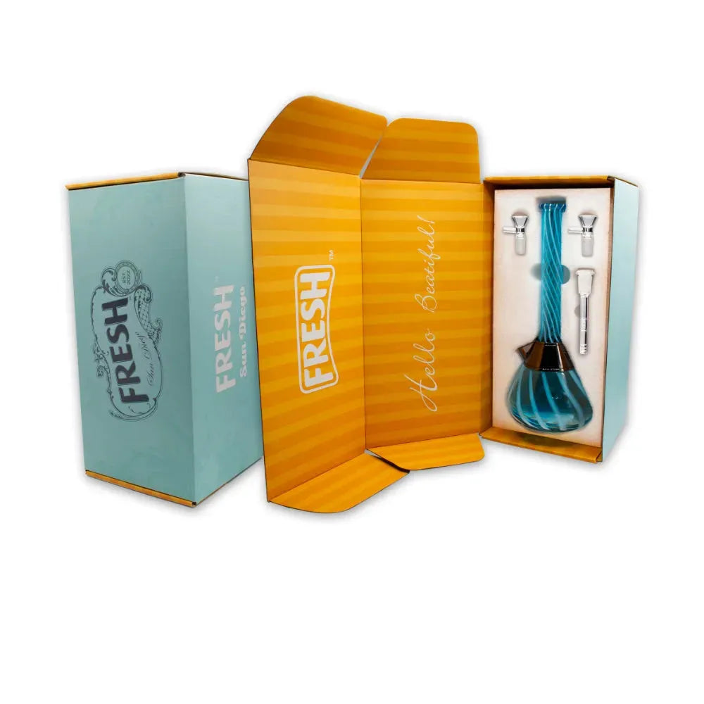Поднимите свои ощущения от курения на новый уровень с помощью Fresh San Diego 12" Мягкий стеклянный поцелуй Бонг, вершина элегантности и инноваций. Путешествие начинается, когда вы открываете этот шедевр, тщательно упакованный в эффектную коробку, тщательно проложенную специальной пеной для максимальной защиты. Ощущение распаковки столь же памятно, как и Бонг сам по себе.