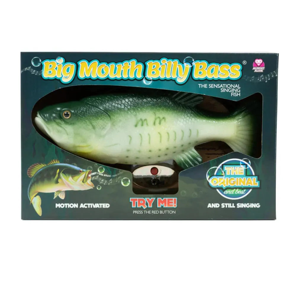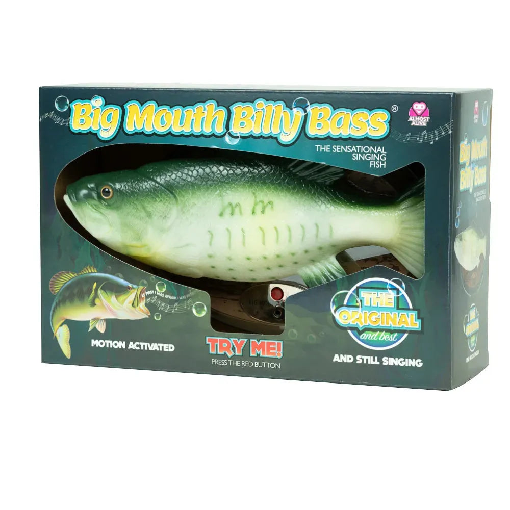Целое новое поколение захочет поделиться магией этого певческого ощущения. Для тех из вас, кто слишком мал, чтобы помнить его в первый раз – «Билли Басс» – это трофейная рыба, установленная на пластине, и была первой по-настоящему анимированной игрушкой с синхронизацией рта. Когда кто-то проходит рядом с Билли – он поворачивает голову, виляет хвостом и поет.