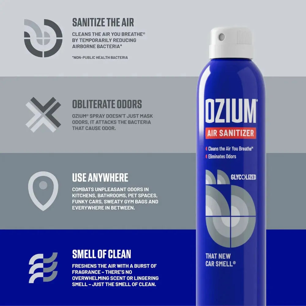 Устранение запахов: OZIUM Спрей не просто маскирует запахи, он уничтожает бактерии, вызывающие запах.