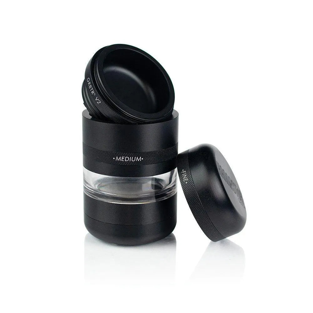 Unlike traditional grinders, the GR8TR V2 by Kannastör is fully modular. You can reconfigure it into a 3-piece grinder, sifter, or storage puck. It includes two easy-change grinder plates (fine and medium) and is made from anodized aluminum for long-lasting durability.