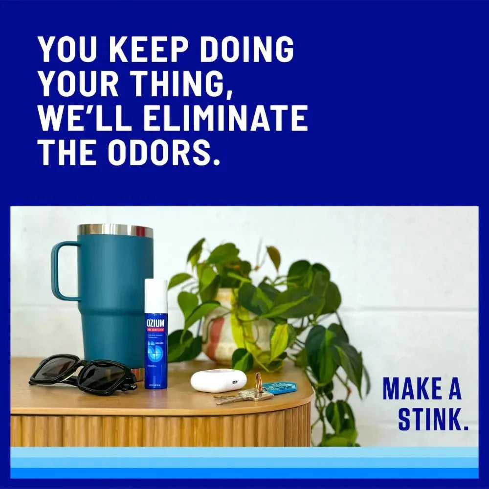 Запах — это просто часть жизни, которая не должна вас сдерживать. Вот почему OZIUM устраняет запахи, вызванные бактериями в воздухе*, так что вы можете продолжать делать вас. Надежный бренд на протяжении 50 лет, OZIUM борется с запахами в вашем доме, офисе, затхлом автомобиле, потной спортивной сумке и везде между ними. Теперь вас ничто не остановит.