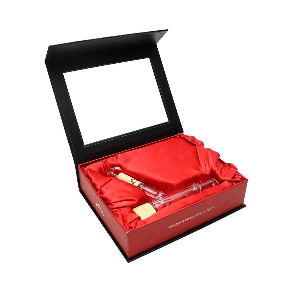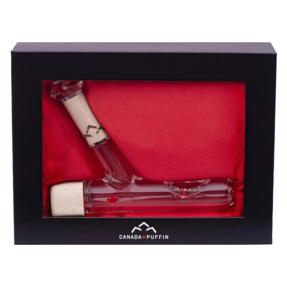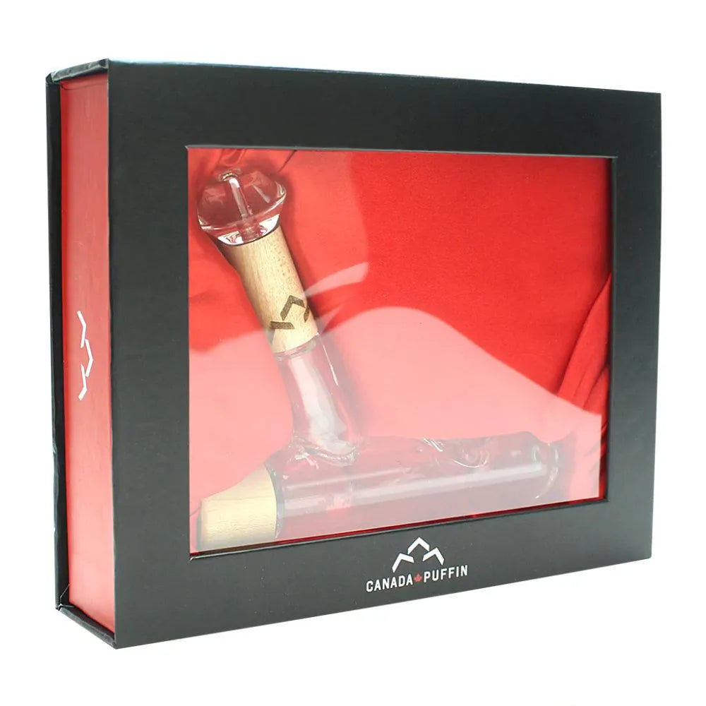 Изготовленный искусными мастерами Canada Puffin, Chalet Стимроллер сочетает в себе высококачественное, термостойкое 4-мм боросиликатное стекло с аутентичным канадским кленом. Его стильный дизайн, вдохновленный лезвием хоккейной клюшки, и интегрированная подставка в стиле шале создают смелую, но вневременную эстетику, идеально подходящую для демонстрации. Каждый Стимроллер уникален, с естественными вариациями древесных волокон, которые делают каждое изделие по-настоящему неповторимым.