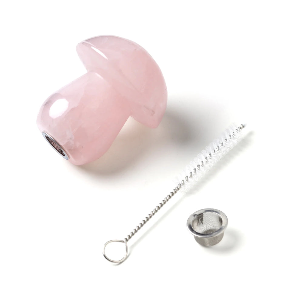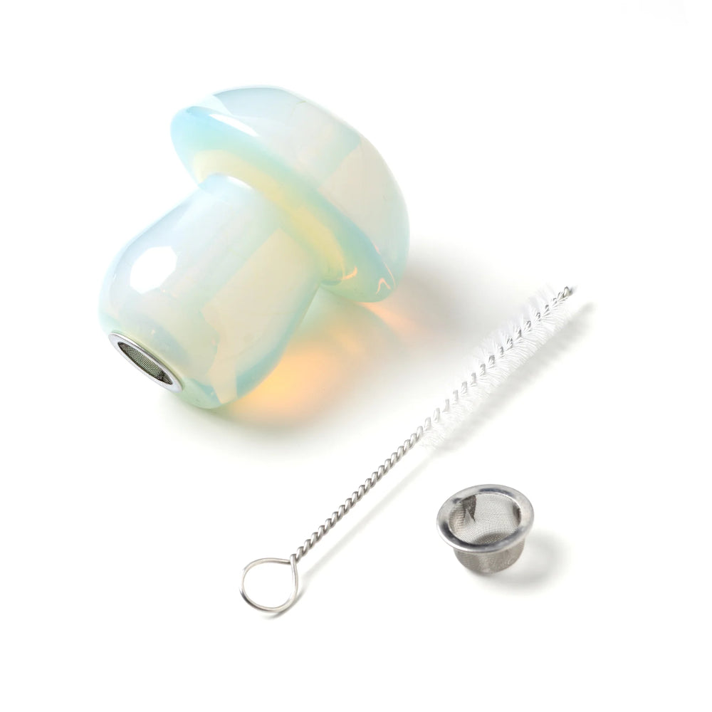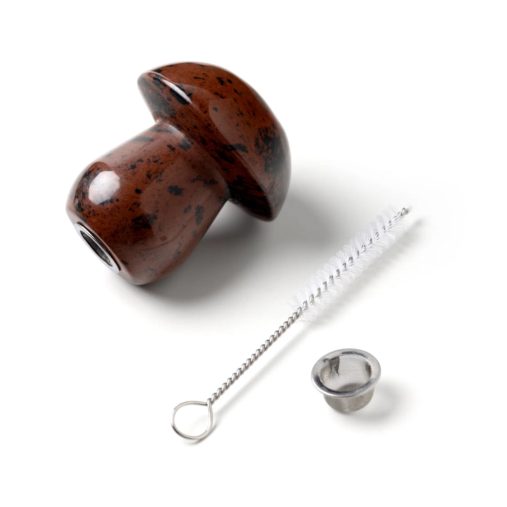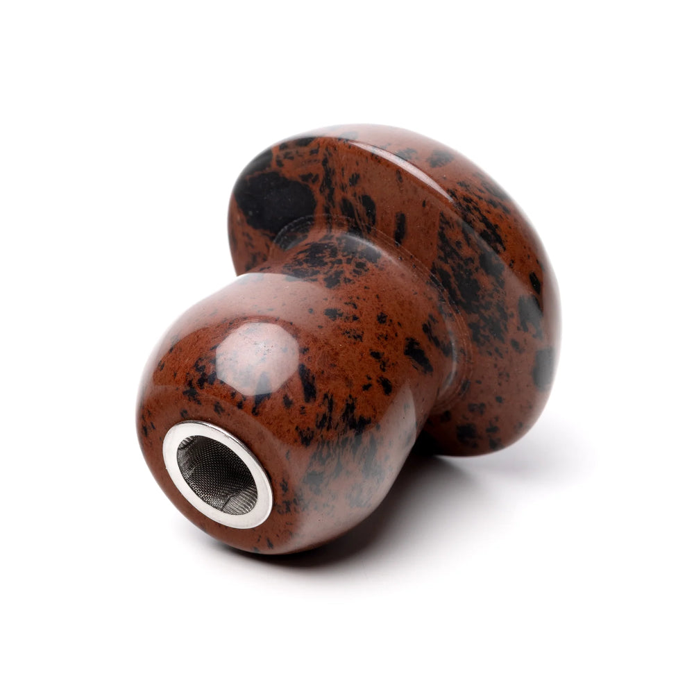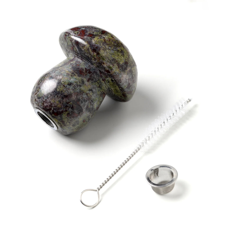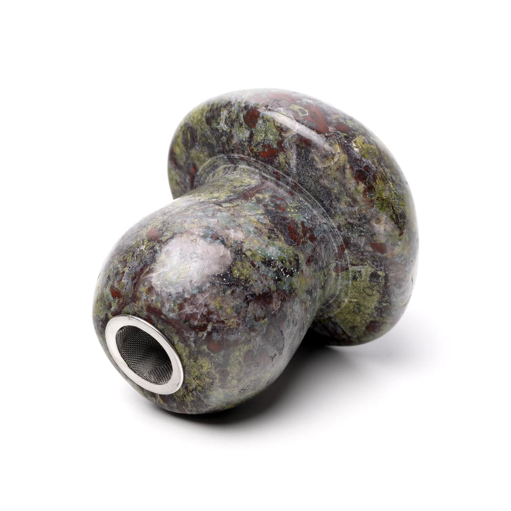 Изготовленная из высококачественного камня или кристалла, каждая трубка имитирует мягкие изгибы шляпки и стебля гриба, делая её не только функциональным инструментом, но и коллекционным предметом органического искусства. Каждая трубка уникально сформирована, предлагая уникальную связь с природным миром через свой материал и форму.