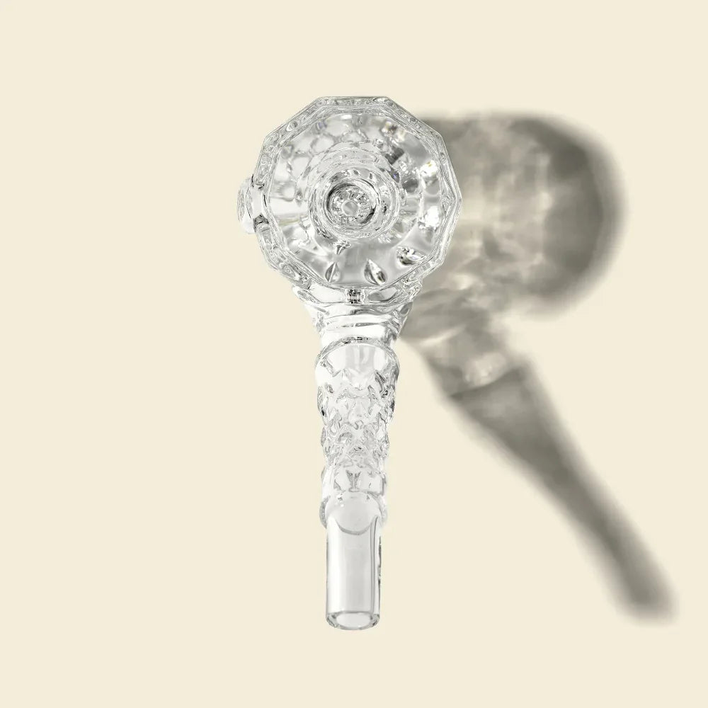 The NWTN Home Highball Hand Pipe is an elegant hand-blown glass piece inspired by heirloom glassware, blending classic design with modern function. Intricately adorned with diamond and wedge cuts that transform an everyday moment into a refined smoking experience.