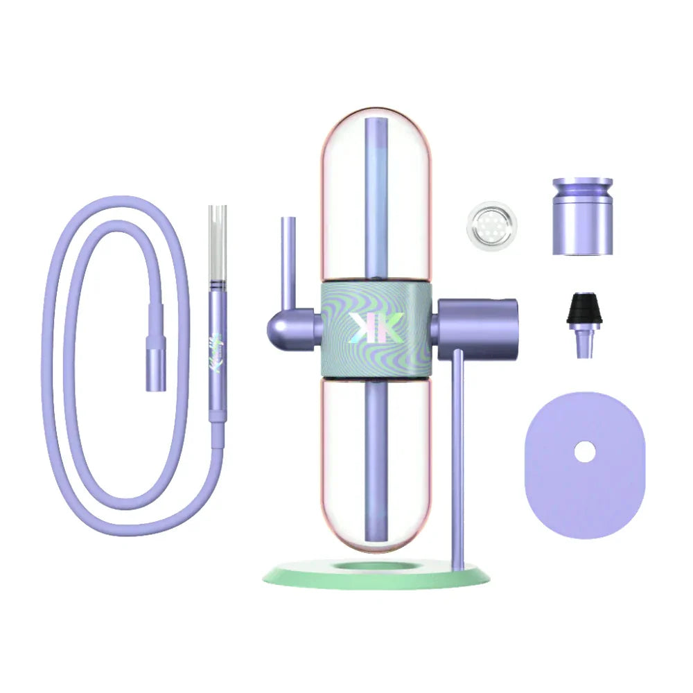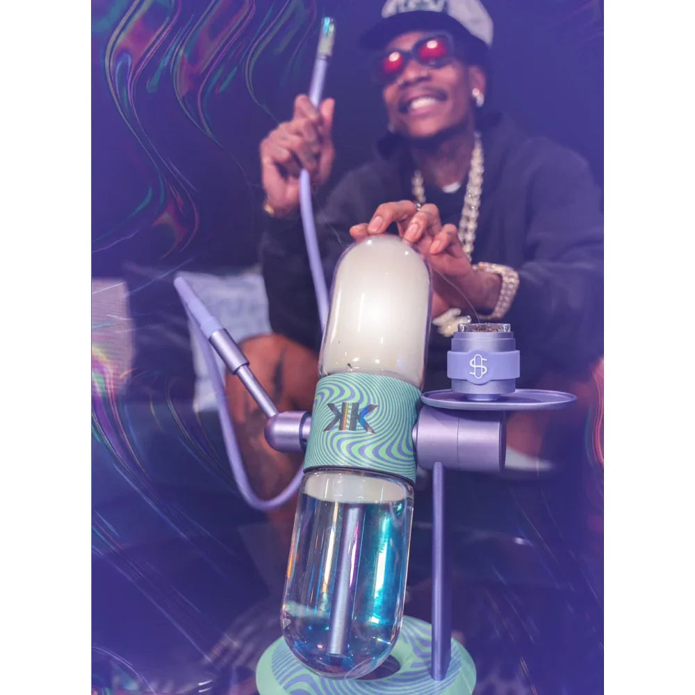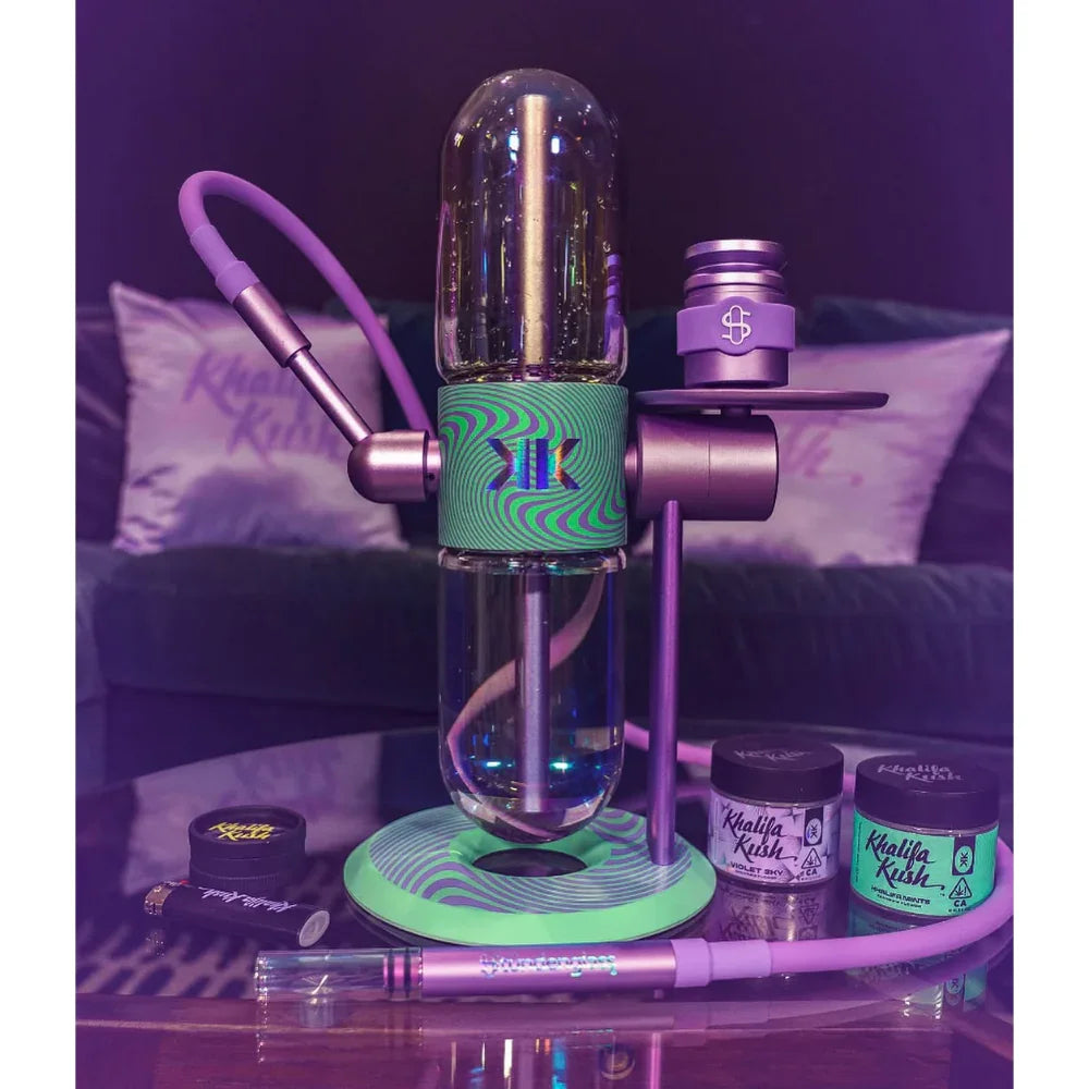 Украшенный вручную нанесенными произведениями искусства, вдохновленными фирменными палитрами Violet Sky и Khalifa Mints от Wiz, каждый экземпляр демонстрирует уникальный вихрь фиолетовых и мятных тонов. Его радужные стеклянные шары и индивидуальный наконечник шланга улучшают как стиль, так и функциональность, обеспечивая плавные, ароматные сеансы с каждым вращением.