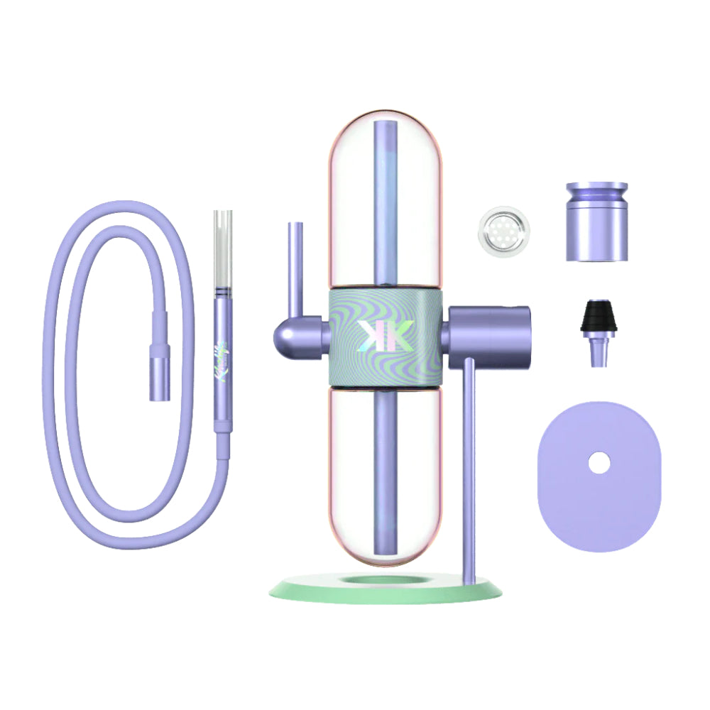 The Stündenglass x Khalifa Gravity Bong Infuser Hookah is a limited-edition, 360° rotating smoking device created in collaboration with Wiz Khalifa. It features a hand-dipped Violet Sky Mints design and is built for smooth, contactless consumption.
